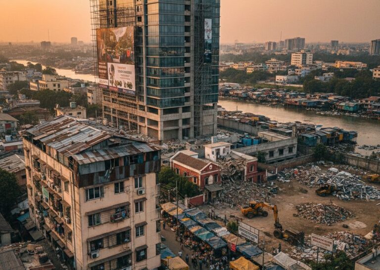 Bayangkan sebuah kota menengah yang memiliki rencana induk tata ruang jangka panjang. Di atas kertas, di bagian selatan kota diatur sebuah kawasan hijau besar dan jalur hijau sepanjang sungai untuk resapan air dan ruang publik. Di samping itu, direncanakan kawasan permukiman berdensitas sedang yang mengarah ke pusat kota dengan jalan kolektor yang cukup lebar untuk mengantisipasi pertumbuhan lalu lintas. Pada tahap perencanaan awal, studi kelayakan menunjukkan keuntungan ekologis dan sosial yang besar: pengurangan banjir, ruang rekreasi, dan nilai tambah estetika. Namun, seiring waktu, realitas lapangan berubah. Tekanan ekonomi mendorong pemilik lahan di selatan menjual sebagian tanahnya kepada investor swasta yang melihat peluang pembangunan perumahan bernilai tinggi. Pemerintah daerah yang sedang kekurangan pendapatan pula tergoda oleh janji pajak dan investasi sehingga mengubah beberapa ketentuan zonasi secara administratif untuk memungkinkan pembangunan yang lebih intensif. Sementara itu, penduduk informal yang selama ini memanfaatkan pinggiran sungai untuk bertani dan berjualan dipaksa mundur, lalu menempati bantaran lain yang lebih rawan banjir. Akibatnya, jalur hijau yang semestinya menjadi resapan berubah menjadi perumahan dan area komersial, sementara jalan kolektor tidak pernah terbangun penuh karena pendanaan dialihkan. Ketika hujan besar datang beberapa tahun kemudian, kawasan yang tadinya direncanakan resapan mengalami banjir hebat karena berkurangnya ruang terbuka. Warga kehilangan mata pencaharian, biaya penanggulangan meningkat, dan konflik antara pemerintah, developer, dan masyarakat memuncak. Kasus ini memperlihatkan bagaimana keputusan ekonomi, perubahan kebijakan lokal, dan kurangnya partisipasi dapat mengubah rencana yang ideal menjadi masalah nyata di lapangan. Ilustrasi tersebut juga menunjukkan bahwa solusi teknis semata tidak cukup tanpa kontrol kelembagaan dan keterlibatan warga yang kuat.